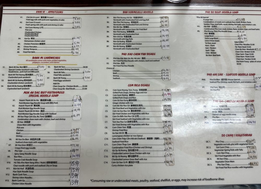 Pho 90 - Temp. CLOSED Menu (Update 2025)